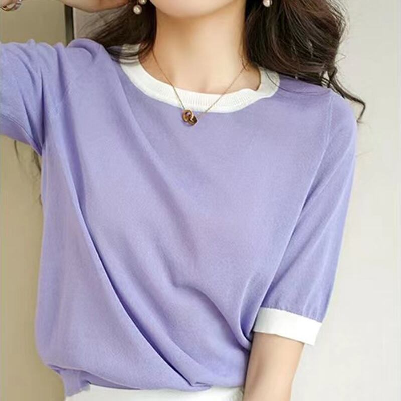 送料無料 2023 夏服薄い Tシャツ女性ルーズ Tシャツニットトップス半袖 Tシャツ Camisetas ショート ハーフスリーブ サマー 夏物 AE1212887735600665722