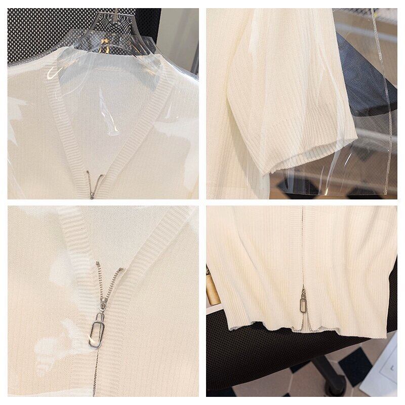 送料無料 半袖ニットトップス白 V ネックジッパー薄い Tシャツ女性 2023 夏黒 Tシャツ女性カーディガン Tシャツ ショート ホワイト ブラック ハーフスリーブ サマー 夏物 Vネック AE1212887782353945022