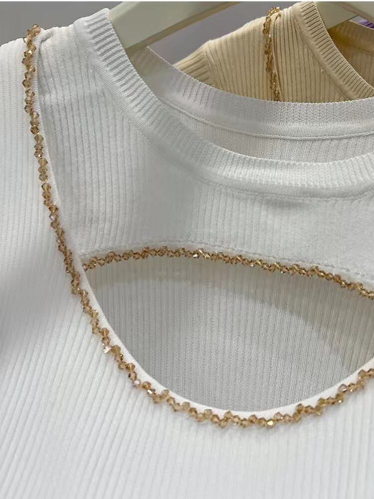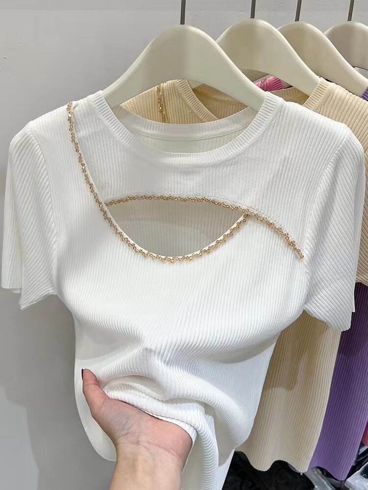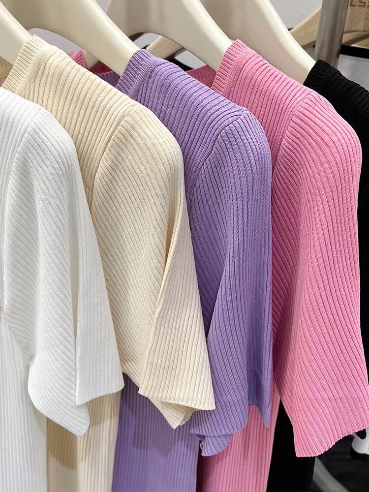 送料無料 Tシャツ 2023 薄型中空アウトニット Tシャツ女性ピンク半袖 Tシャツトップス夏のレディース ショート ハーフスリーブ サマー 夏物 AE1212887765023655046