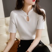送料無料 Tシャツ 2022 夏薄いニット Tシャツ女性ヴィンテージスリムトップス半袖女性 Tシャツ黒、白、紫 Camisetas ショート ホワイト ブラック ハーフスリーブ サマー 夏物 パープル ビンテージ AE1212887751537362101 | 女性の為の通販サイト-fashion navi