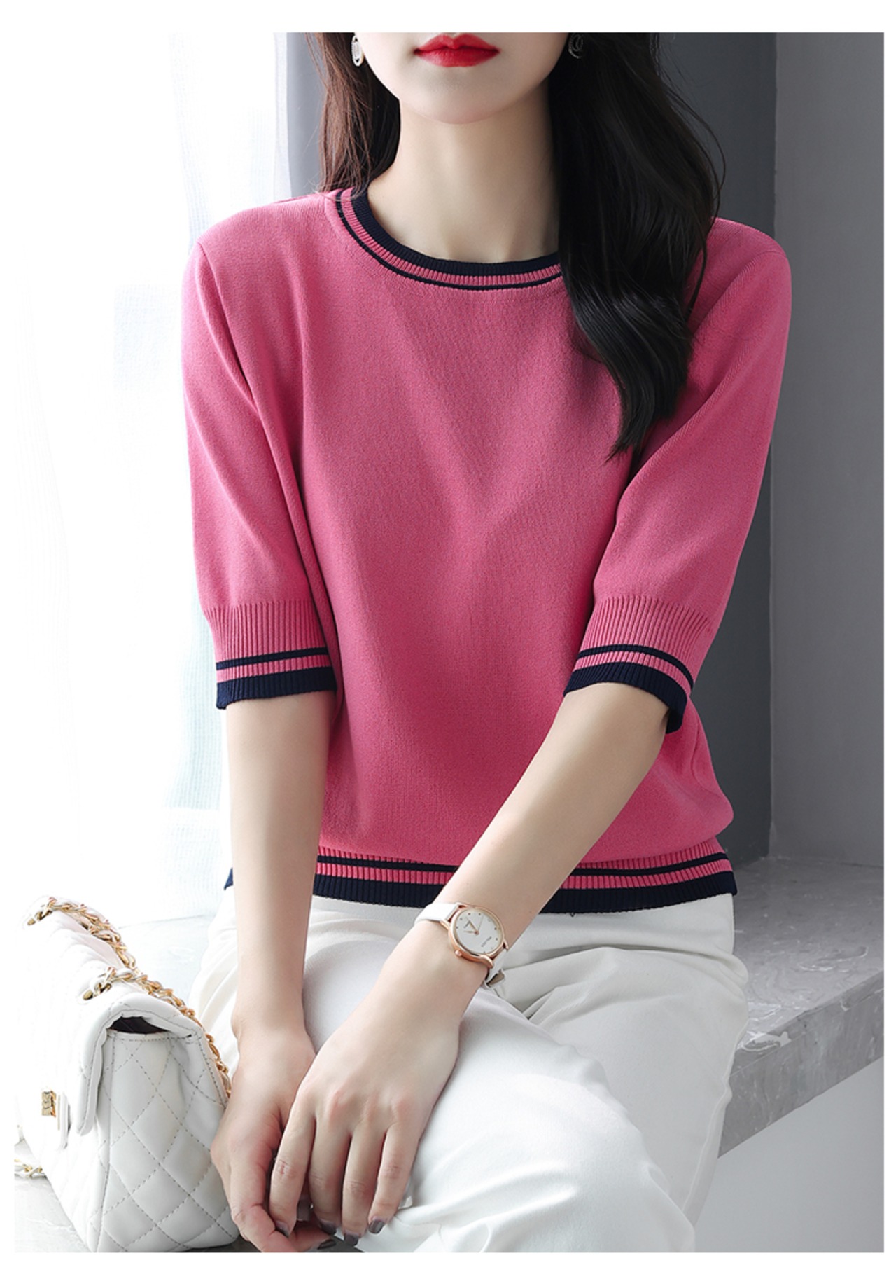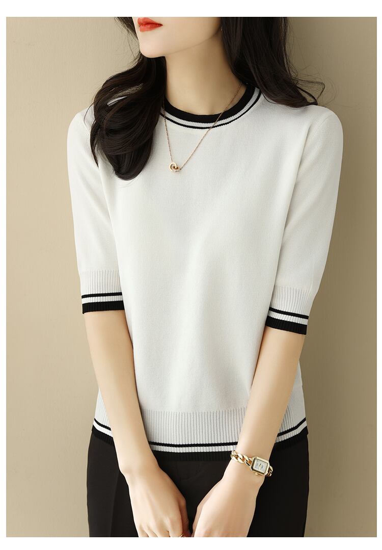 送料無料 Camisetas デ 2022 夏半袖 Tシャツ女性コントラストカラートップ Tシャツニット服 Tシャツ ショート ハーフスリーブ サマー 夏物 AE1212887750241931818