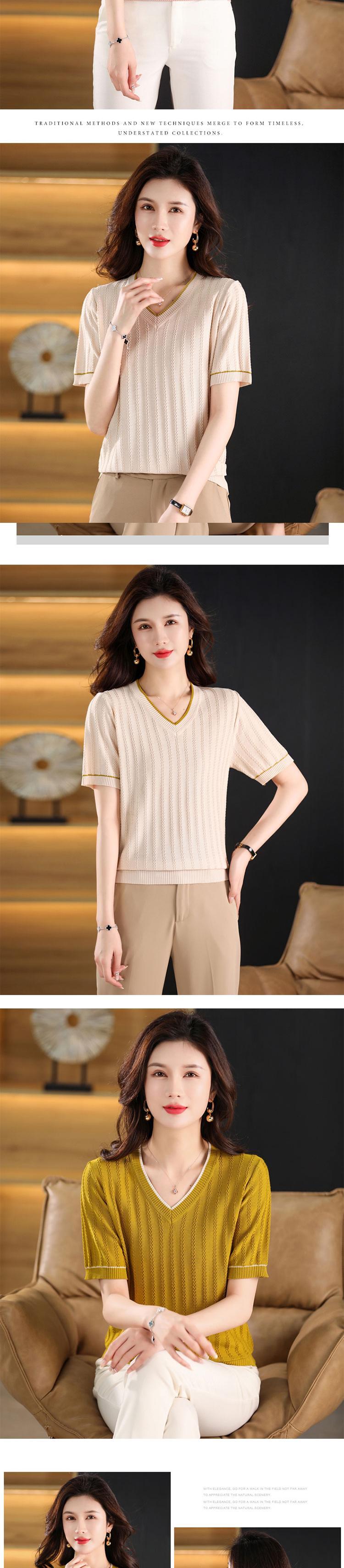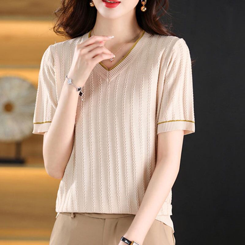 送料無料 Tシャツ 2023 夏 V ネック半袖 Tシャツ女性アイスシルク Tシャツピンクニットトップス婦人服 ショート ハーフスリーブ サマー 夏物 Vネック AE121288776916532662