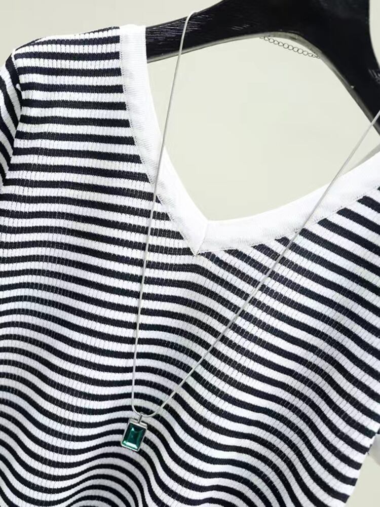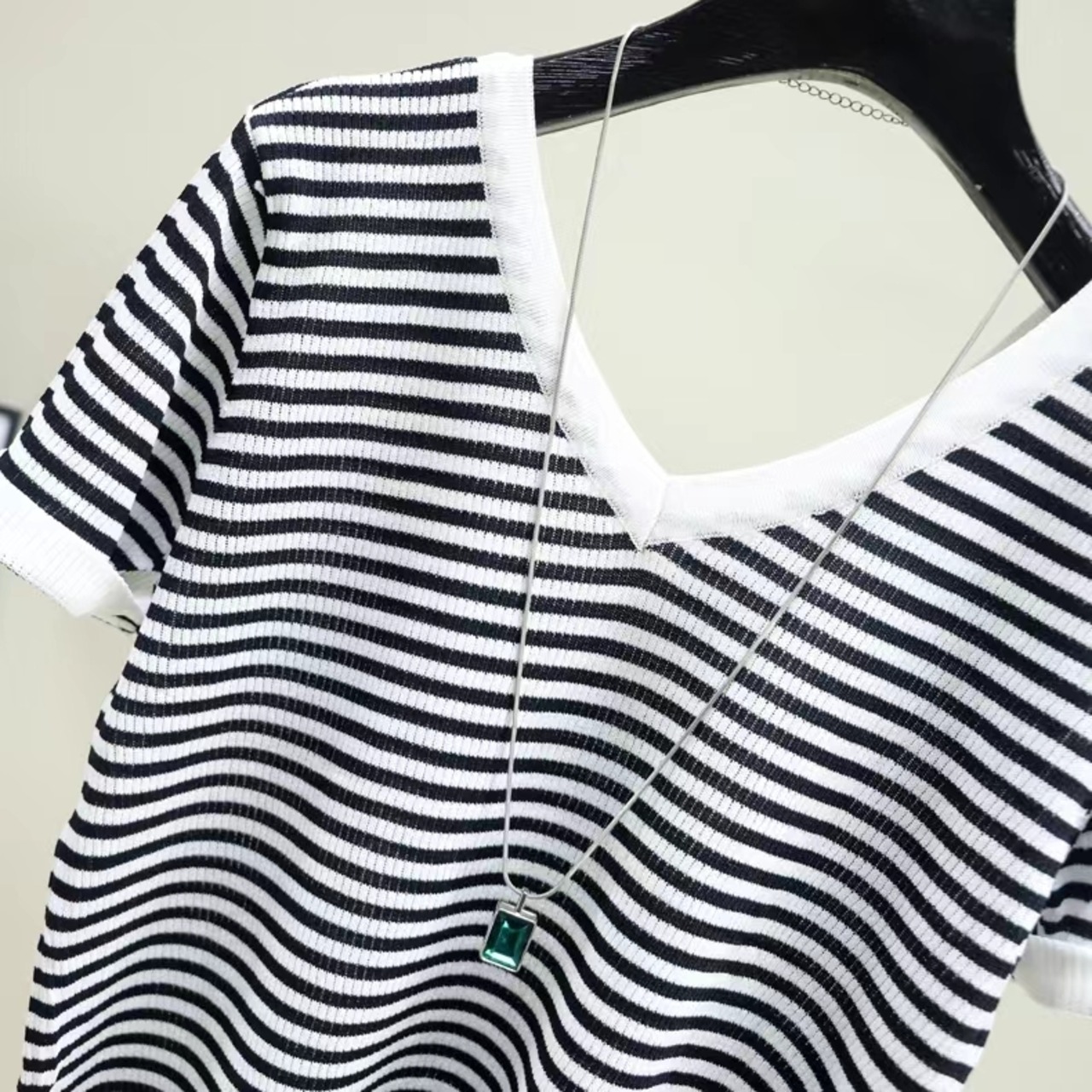 送料無料 ニットトップ女性 Tシャツコントラストカラー半袖 Tシャツ V ネック婦人服 Tシャツ 2022 夏 ショート ハーフスリーブ サマー 夏物 Vネック AE1212887796720239542 | 女性の為の通販サイト-fashion navi