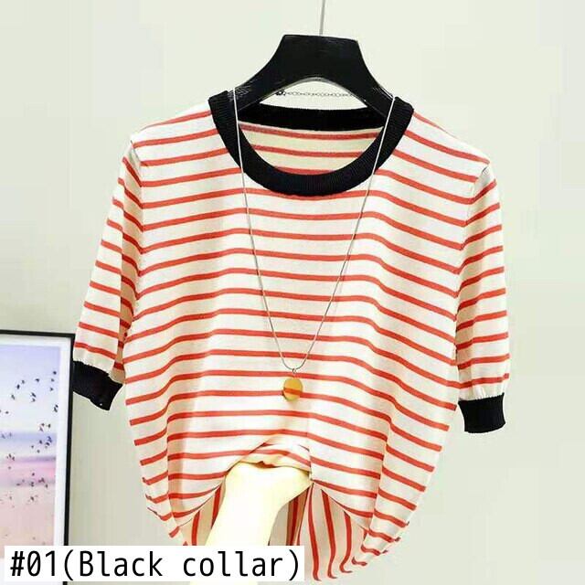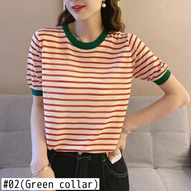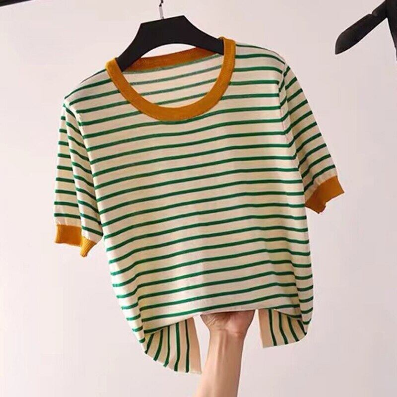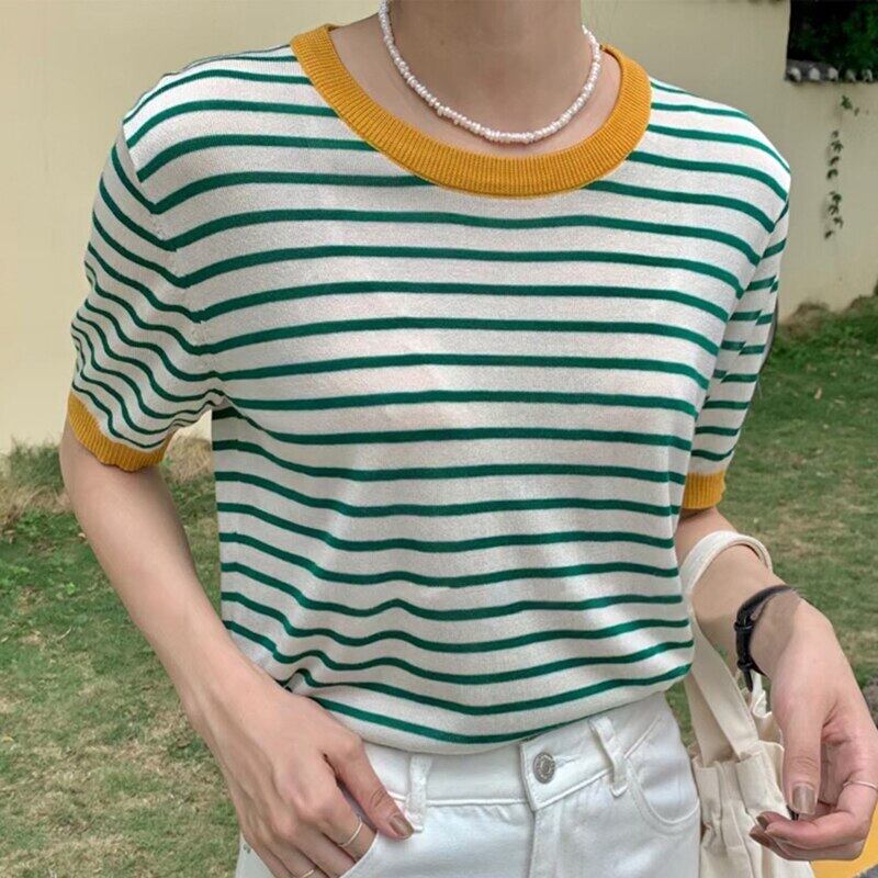 送料無料 Camisetas 2023 夏 Tシャツストライプ Tシャツ女性 O ネックニット Tシャツ半袖トップレディース ショート ハーフスリーブ サマー 夏物 Oネック AE1212887752323678454