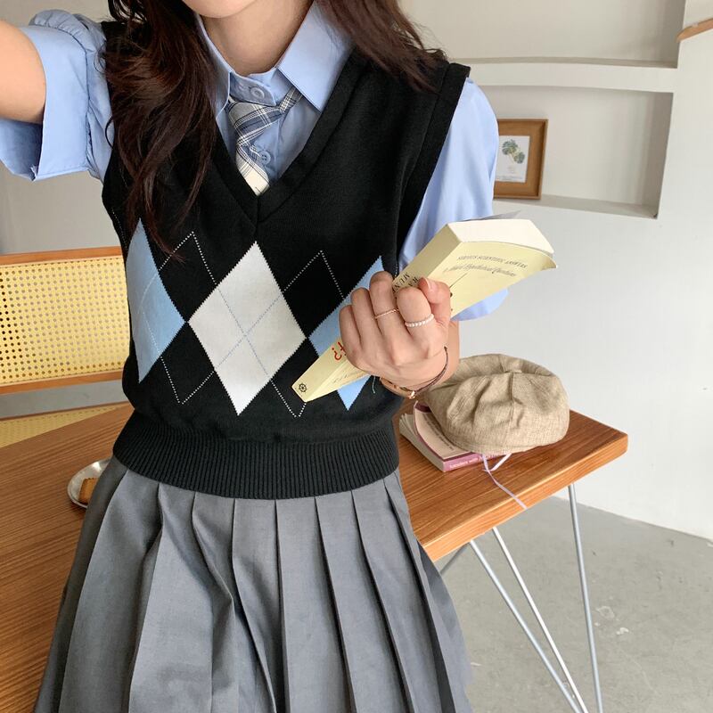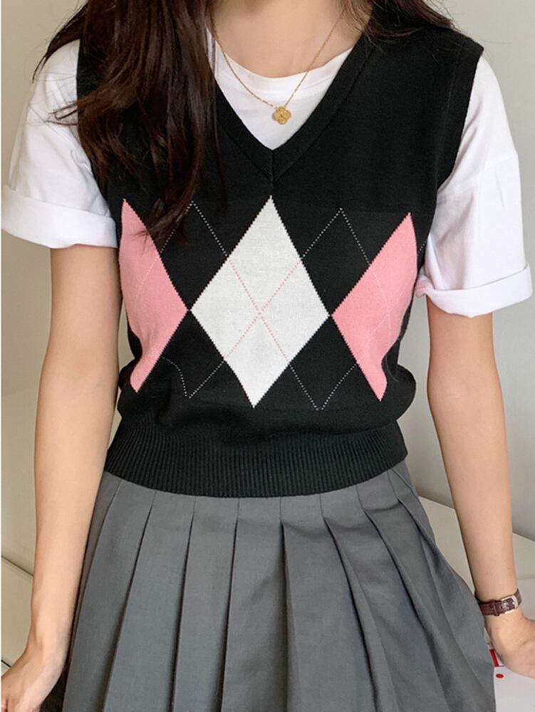 送料無料 2022 ヴィンテージチェック柄セーターベスト女性 V ネックノースリーブタンクスタイルニットプルオーバートップス毎日秋冬 オータム 秋物 ウィンター 冬物 Vネック ビンテージ AE121288773116946808