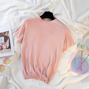 送料無料 ピンクのベーシック Tシャツ女性 2023 Camisetas 夏 Tシャツ薄いニットトップ半袖 Tシャツ ショート ハーフスリーブ サマー 夏物 AE1212887791182020349