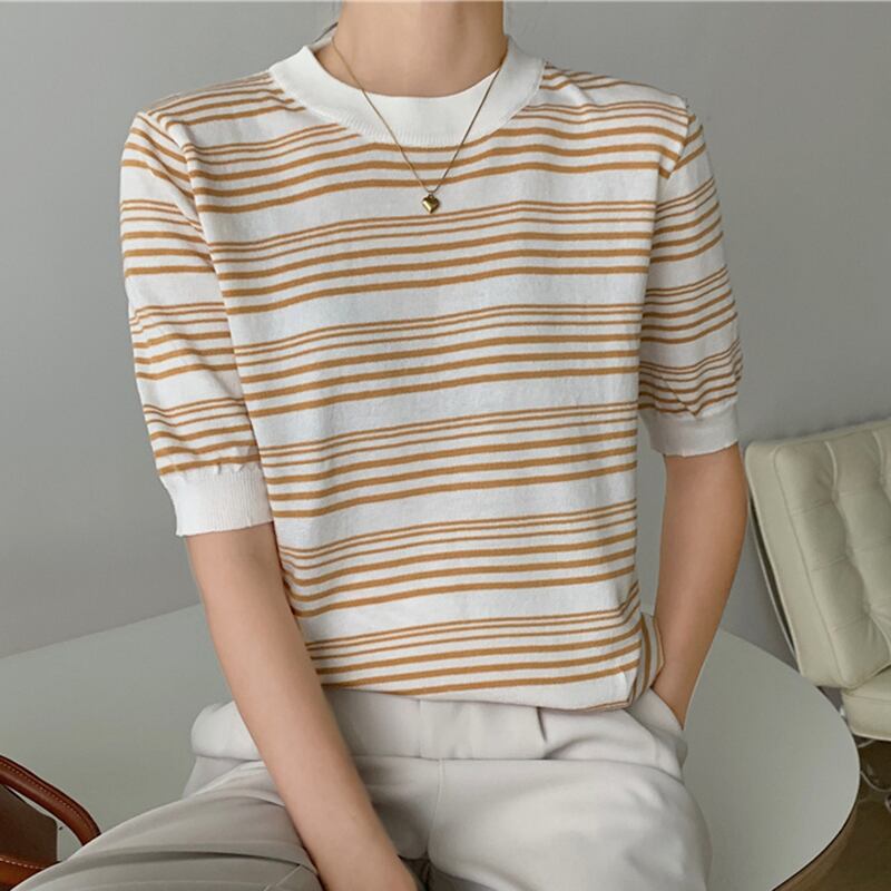 送料無料 ストライプ半袖 Tシャツ女性ルーズ Tシャツ O ネック Tシャツ 2023 夏ニットトップ女性服 Ropa デ ショート ハーフスリーブ サマー 夏物 Oネック AE1212887733901815503