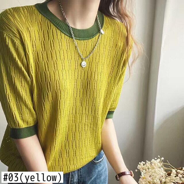 送料無料 2023 夏 O ネック半袖 Tシャツ中空アウト Tシャツ女性薄型ニットトップスパッチワーク Tシャツ ショート ハーフスリーブ サマー 夏物 Oネック AE1212887753071155979 | 女性の為の通販サイト-fashion navi