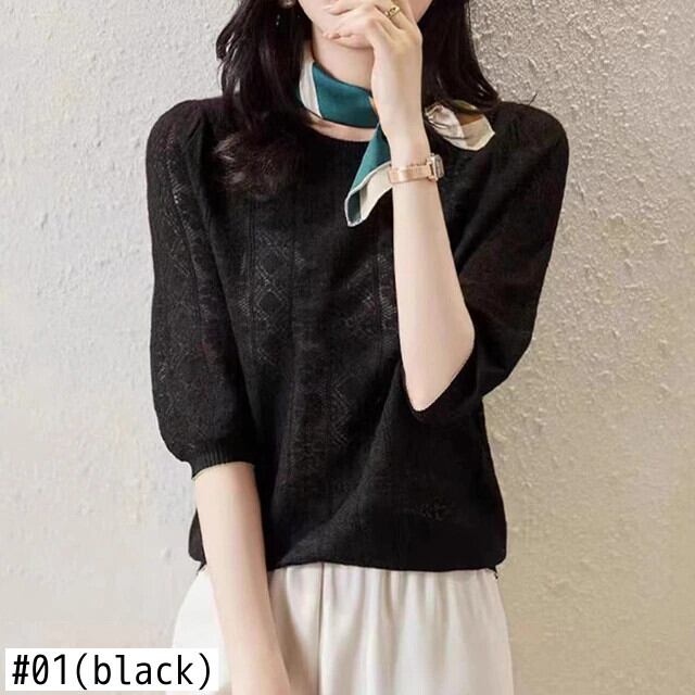送料無料 薄型中空アウトニット Tシャツ女性 2023 夏白トップス O ネック Tシャツ女性半袖ルーズ Tシャツ ショート ホワイト ハーフスリーブ サマー 夏物 Oネック AE1212887794854276818