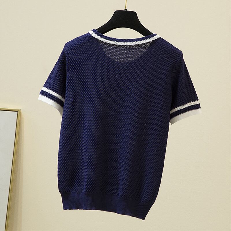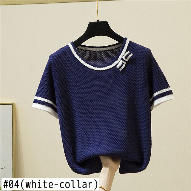 送料無料 O ネック Tシャツ女性パッチワーク半袖 Tシャツレディース 2023 夏ニットトップスボウ Tシャツ ショート リボン ハーフスリーブ サマー 夏物 AE1212887716246084452