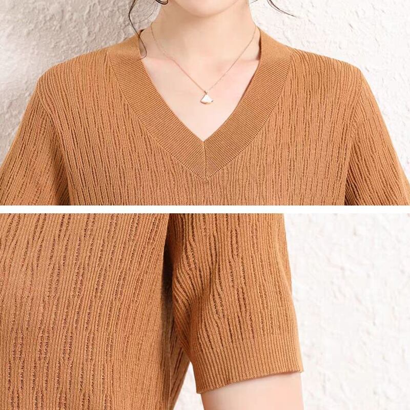 送料無料 LJSXLS 半袖 Tシャツ女性 2023 夏服 Tシャツ V ネックニットトップス Damskie Tシャツ Camiseta ショート ハーフスリーブ サマー 夏物 Vネック AE1212887772467846957