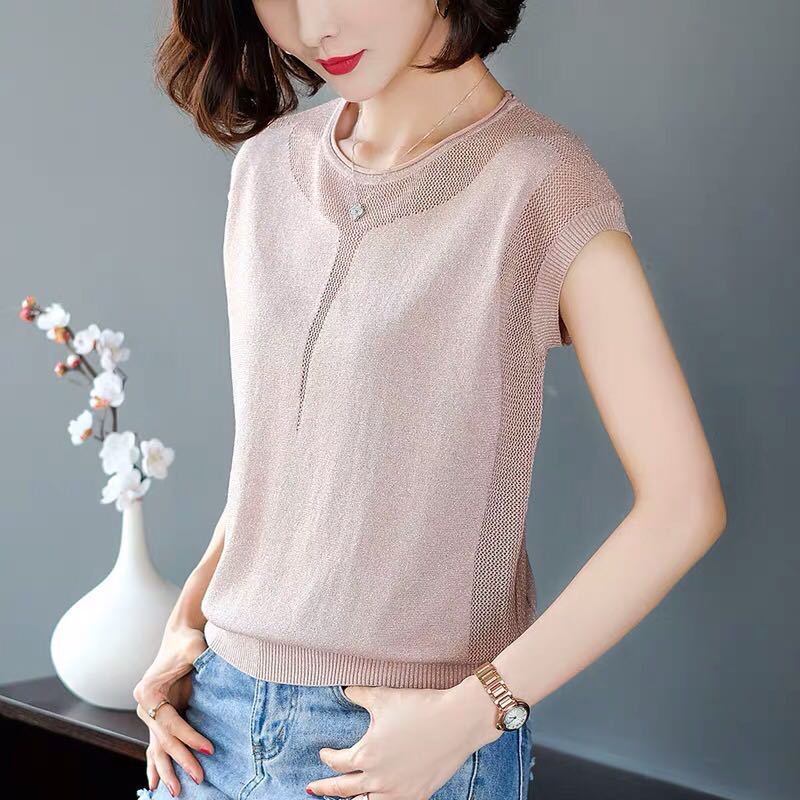 送料無料 2022 夏薄いニット Tシャツ女性スタイル半袖 Tシャツ中空アウトトップス Camisetas デ ショート ハーフスリーブ サマー 夏物 AE1212887710145900893