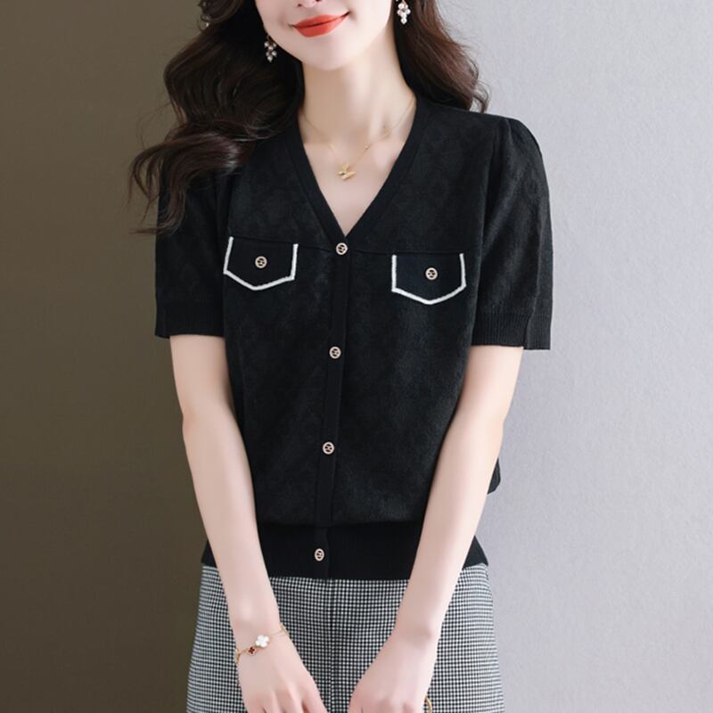 送料無料 半袖 Tシャツ女性 2023 夏の婦人服アイスシルクニットトップス V ネック Tシャツ Camisetas ショート ハーフスリーブ サマー 夏物 Vネック AE1212887719383863247