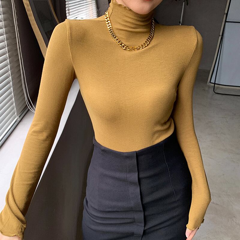 送料無料 固体タートルネック Tシャツ女性 2022 Sprin 秋の女性の服長袖 Tシャツスリムコットンレディーストップス基本的なソフト Tシャツ ロング オータム 秋物 ソリッドカラー AE1212887750601046463
