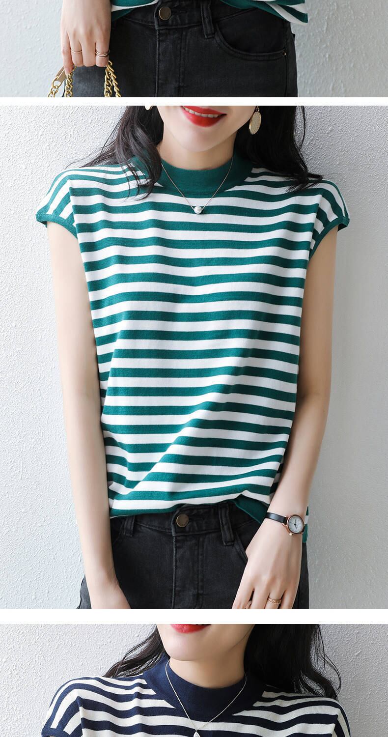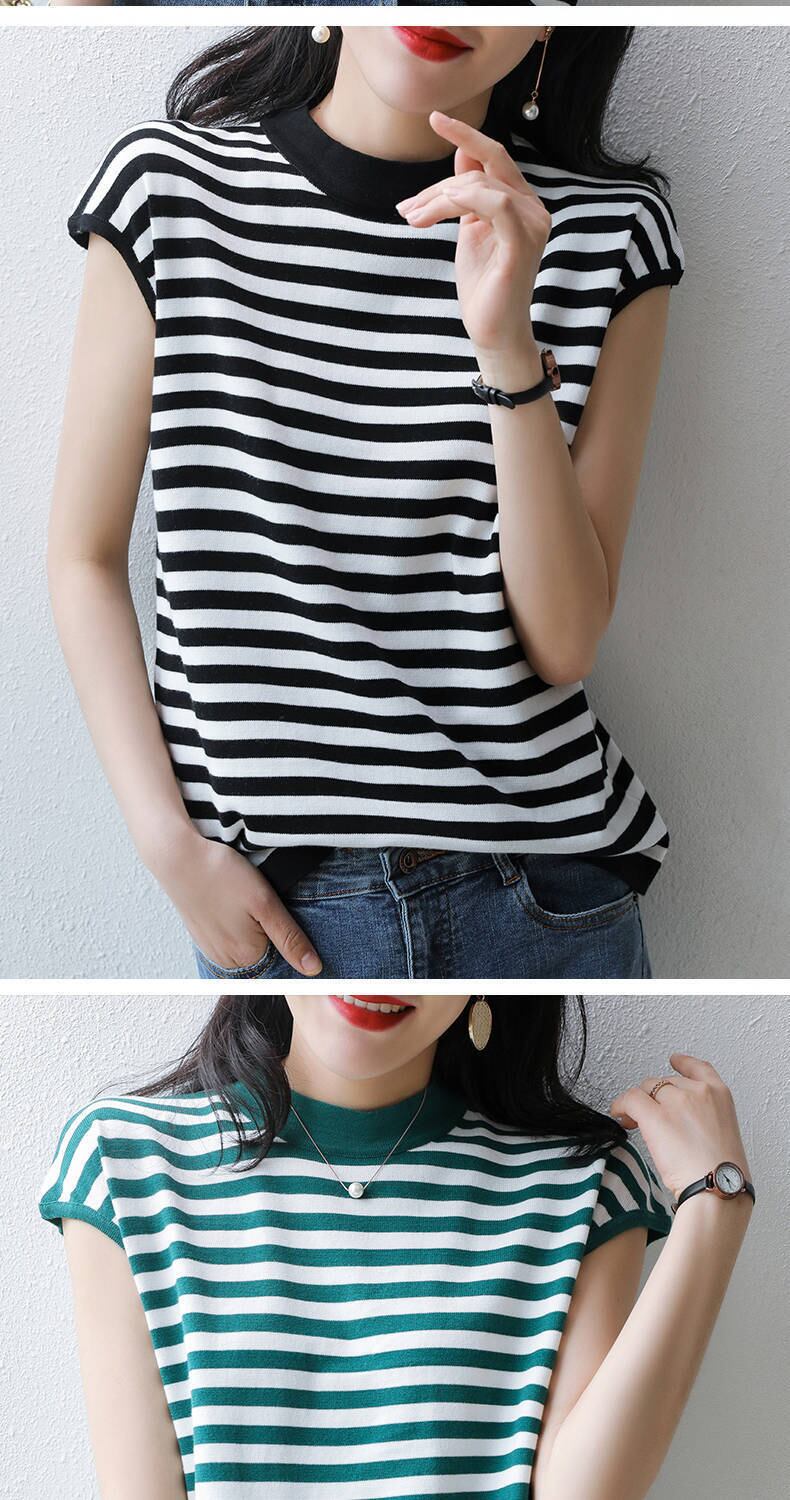 送料無料 Tシャツストライプ Tシャツ女性コントラストカラーニットトップスヴィンテージ服半袖 Tシャツ 2022 夏の Tシャツ ショート ハーフスリーブ サマー 夏物 ビンテージ AE1212887735141787592