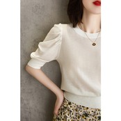送料無料 LJSXLS ニット Tシャツ女性パフスリーブピンク Tシャツトップス夏服レディース Tシャツ Camisetas デ サマー 夏物 AE1212887757881610548
