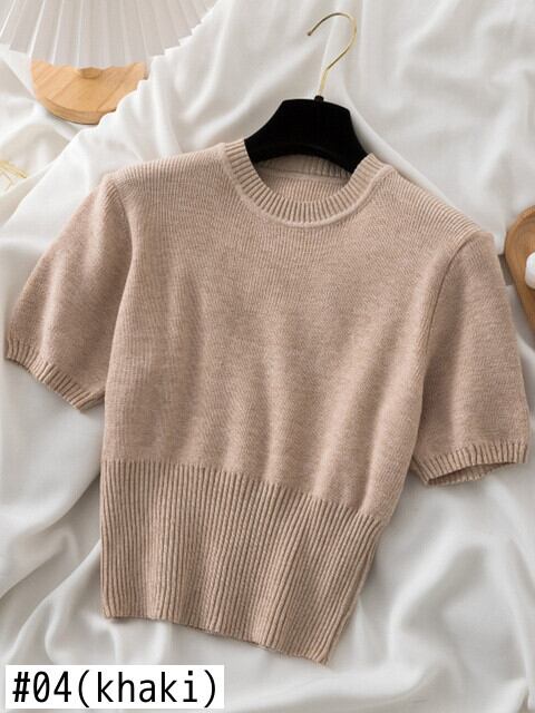 送料無料 クロップトップ女性 2022 夏のレディース Tシャツ半袖 Tシャツニット女性服 Tシャツ O ネック弾性 Tシャツ ショート ハーフスリーブ エラスティック 伸縮 サマー 夏物 Oネック AE1212887724820491242 | 女性の為の通販サイト-fashion navi