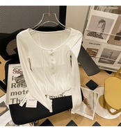 送料無料 綿 O ネック Tシャツ女性 2022 Tシャツ秋白黒クロップトップススリム長袖 Tシャツ ロング ホワイト ブラック コットン オータム 秋物 Oネック AE1212887741079441196