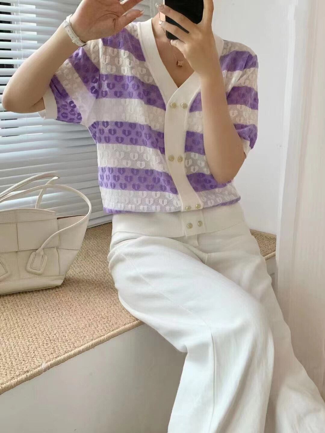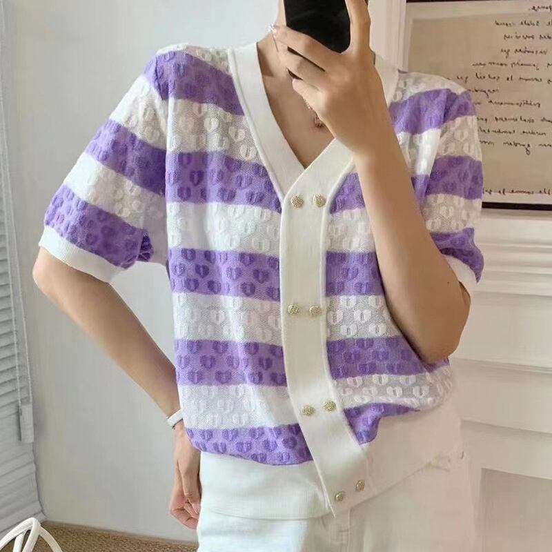 送料無料 服 2023 夏薄い Tシャツ女性半袖 Tシャツニットカーディガントップス O ネック Tシャツ ショート ハーフスリーブ サマー 夏物 Oネック AE1212887731442837841
