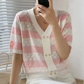 送料無料 服 2023 夏薄い Tシャツ女性半袖 Tシャツニットカーディガントップス O ネック Tシャツ ショート ハーフスリーブ サマー 夏物 Oネック AE1212887731442837841 | 女性の為の通販サイト-fashion navi