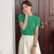 送料無料 半袖ニット Tシャツ女性中空アウトセクシーなクロップドトップス Tシャツレディース夏 Camisetas ショート ハーフスリーブ サマー 夏物 AE1212887764753034995 | 女性の為の通販サイト-fashion navi