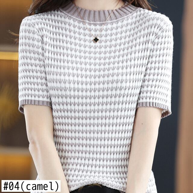 送料無料 2023 夏の Tシャツストライプ Tシャツ女性 O ネックニットトップス半袖 Tシャツ Camisetas ショート ハーフスリーブ サマー 夏物 Oネック AE1212887756700987136
