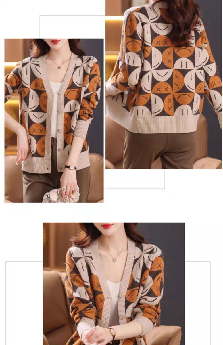 送料無料 2023 秋冬長袖カーディガン女性セーターニットトップス V ネック漫画セーターニットレディース ロング オータム 秋物 ウィンター 冬物 Vネック AE1212887731911356818