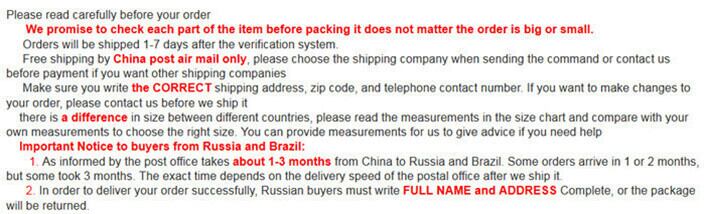 3)商品到着後に関して、サイズ変更、カラーやイメージが違う、実寸が違うなどのお客様都合での返品・交換は一切お受けしておりません。そのような方のご購入は予めご遠慮下さい。