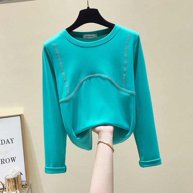 送料無料 LJSXLS 2020 秋の原宿服ダイヤモンドコットン Tシャツ女性長袖 Tシャツスリムトップス Roupas s ロング かわいい オータム 秋物 AE1212887756271842554