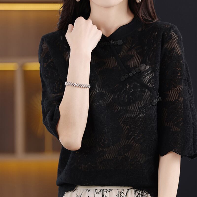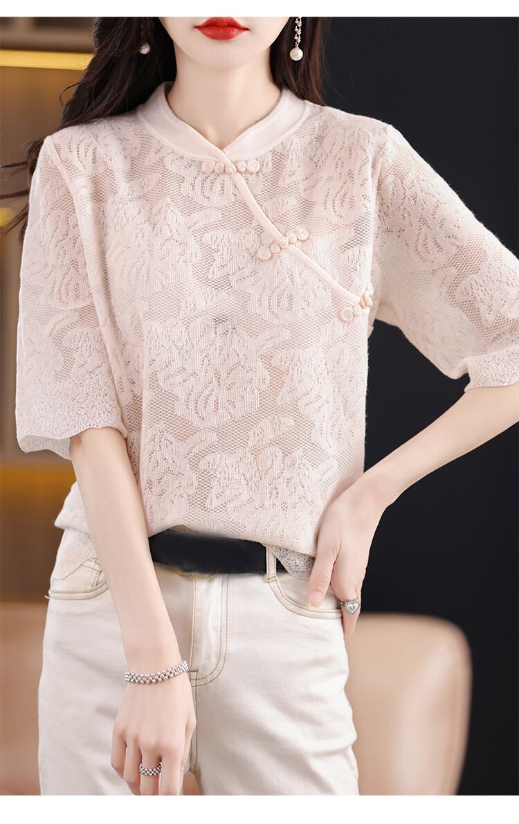 送料無料 ニットトップ女性 2023 夏中国風のレディースプルオーバー薄いルーズ Tシャツ半袖 Tシャツ ショート ハーフスリーブ サマー 夏物 AE1212887750989990889
