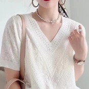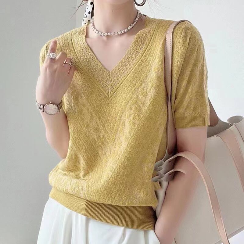送料無料 半袖 Tシャツ女性 V ネック女性 Tシャツ 2023 夏プルオーバーニットトップスルーズ Tシャツ Camisetas デ ショート ハーフスリーブ サマー 夏物 Vネック AE1212887769955067975 | 女性の為の通販サイト-fashion navi