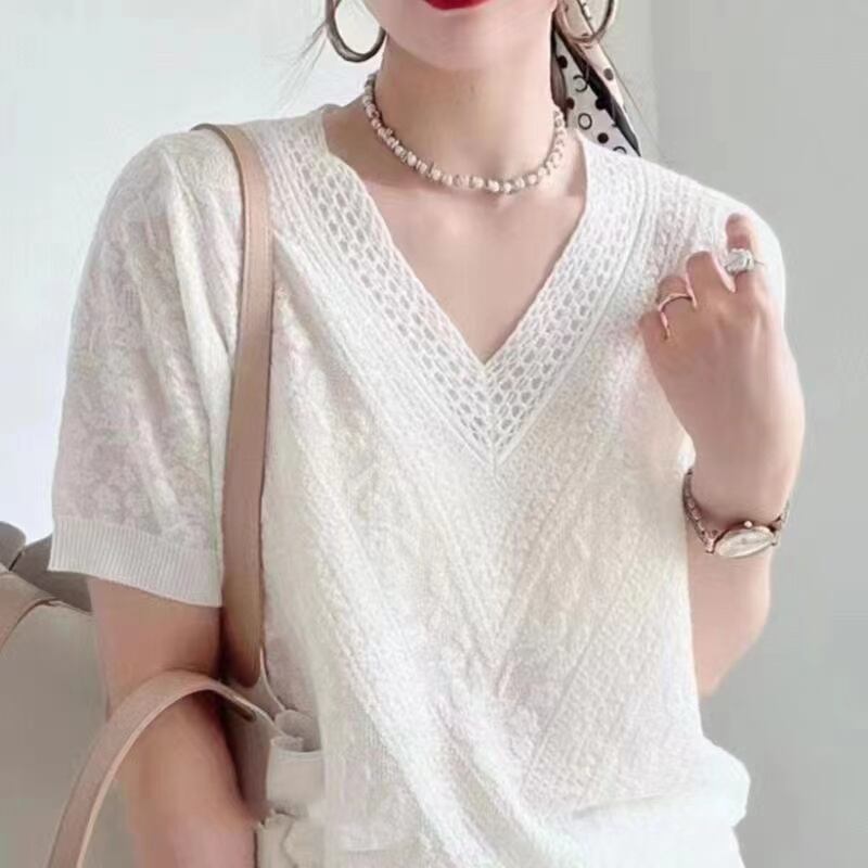 送料無料 半袖 Tシャツ女性 V ネック女性 Tシャツ 2023 夏プルオーバーニットトップスルーズ Tシャツ Camisetas デ ショート ハーフスリーブ サマー 夏物 Vネック AE1212887769955067975