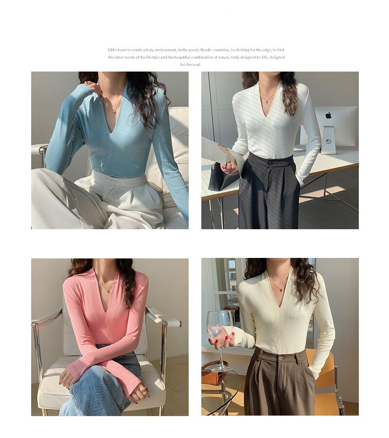 送料無料 Tシャツセクシーなスリム V ネック長袖 Tシャツ女性 2022 春秋ピンクコットン Tシャツ基本トップ ロング スプリング 春物 オータム 秋物 Vネック AE1212887798220182866