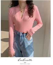 送料無料 Tシャツセクシーなスリム V ネック長袖 Tシャツ女性 2022 春秋ピンクコットン Tシャツ基本トップ ロング スプリング 春物 オータム 秋物 Vネック AE1212887798220182866 | 女性の為の通販サイト-fashion navi