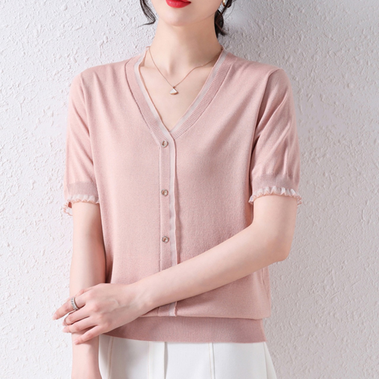 送料無料 Camisetas 2023 夏グリーンニットトップス女性 V ネック半袖 Tシャツボタン Tシャツレディース ショート ハーフスリーブ サマー 夏物 Vネック AE121288775099862888 | 女性の為の通販サイト-fashion navi