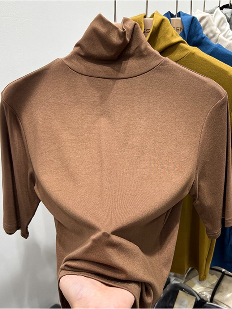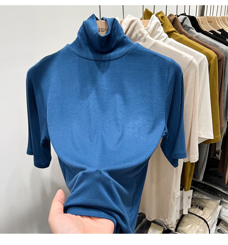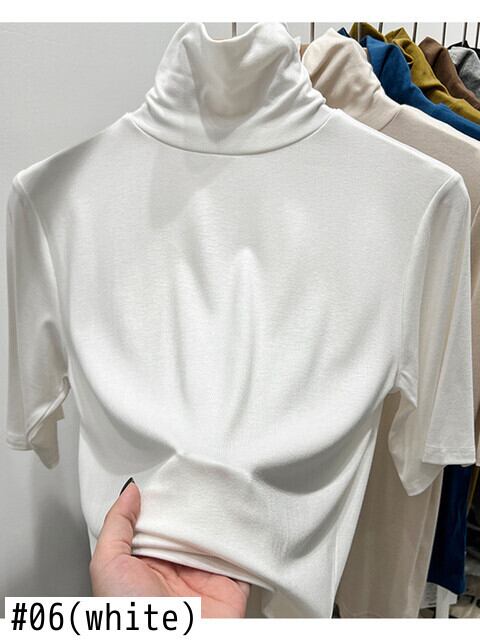 送料無料 スタイルコットン Tシャツ女性 2023 春夏半袖白トップス基本 Tシャツ女性服タートルネック Tシャツ ショート ホワイト ハーフスリーブ スプリング 春物 サマー 夏物 AE1212887736403044602