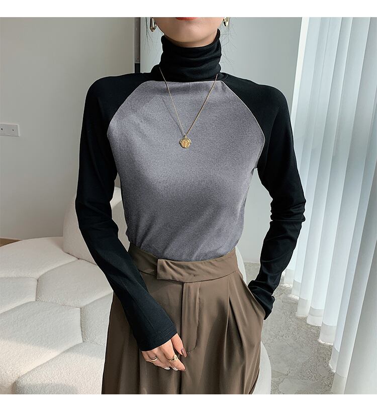 送料無料 綿長袖 Tシャツコントラストカラートップタートルネック Tシャツ女性 2022 Sprin 女性服 Tシャツスリム基本 Poleras ロング コットン AE1212887723389406192