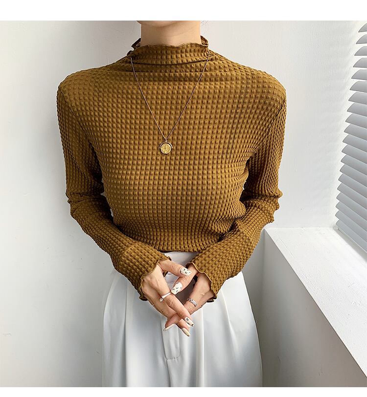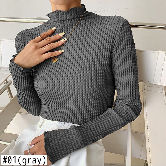 送料無料 ハーフタートルネック長袖 Tシャツ固体女性 Tシャツレディーススリム Tシャツ 2022 春秋トップ ロング スプリング 春物 オータム 秋物 ソリッドカラー AE1212887778808850879