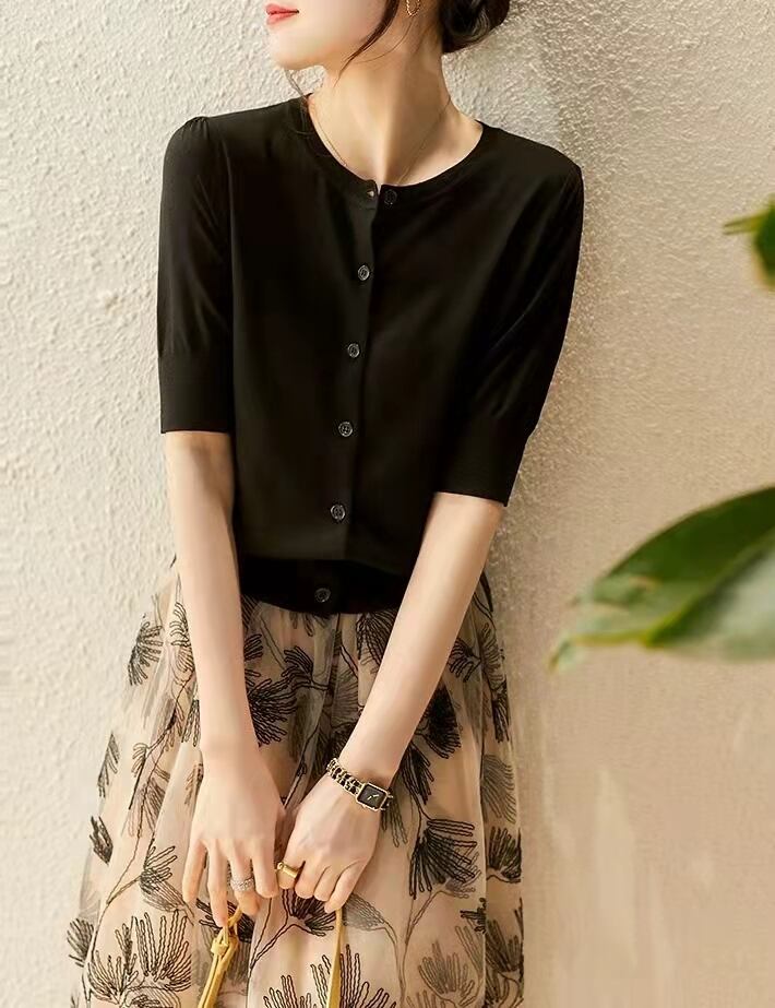 送料無料 2023 夏の基本カーディガンニットトップス女性 Tシャツ女性 O ネック半袖 Tシャツ Tシャツ ショート ハーフスリーブ サマー 夏物 Oネック AE1212887739146086805