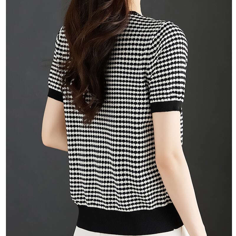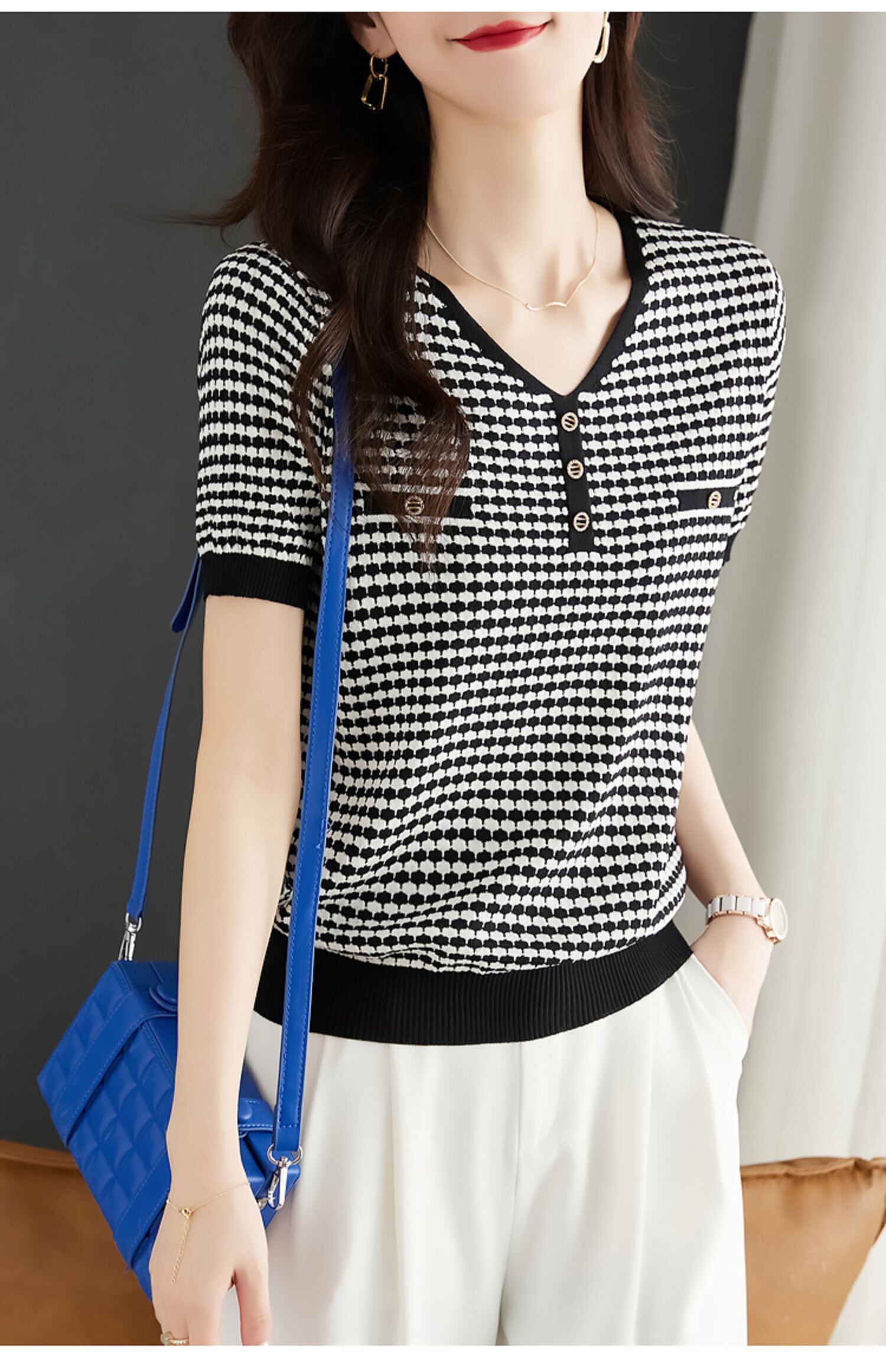 送料無料 半袖 Tシャツ女性 2023 夏のアイスシルクニット Tシャツ女性ルーズ薄型 V ネックトップス Tシャツ ショート ハーフスリーブ サマー 夏物 Vネック AE1212887728242069963
