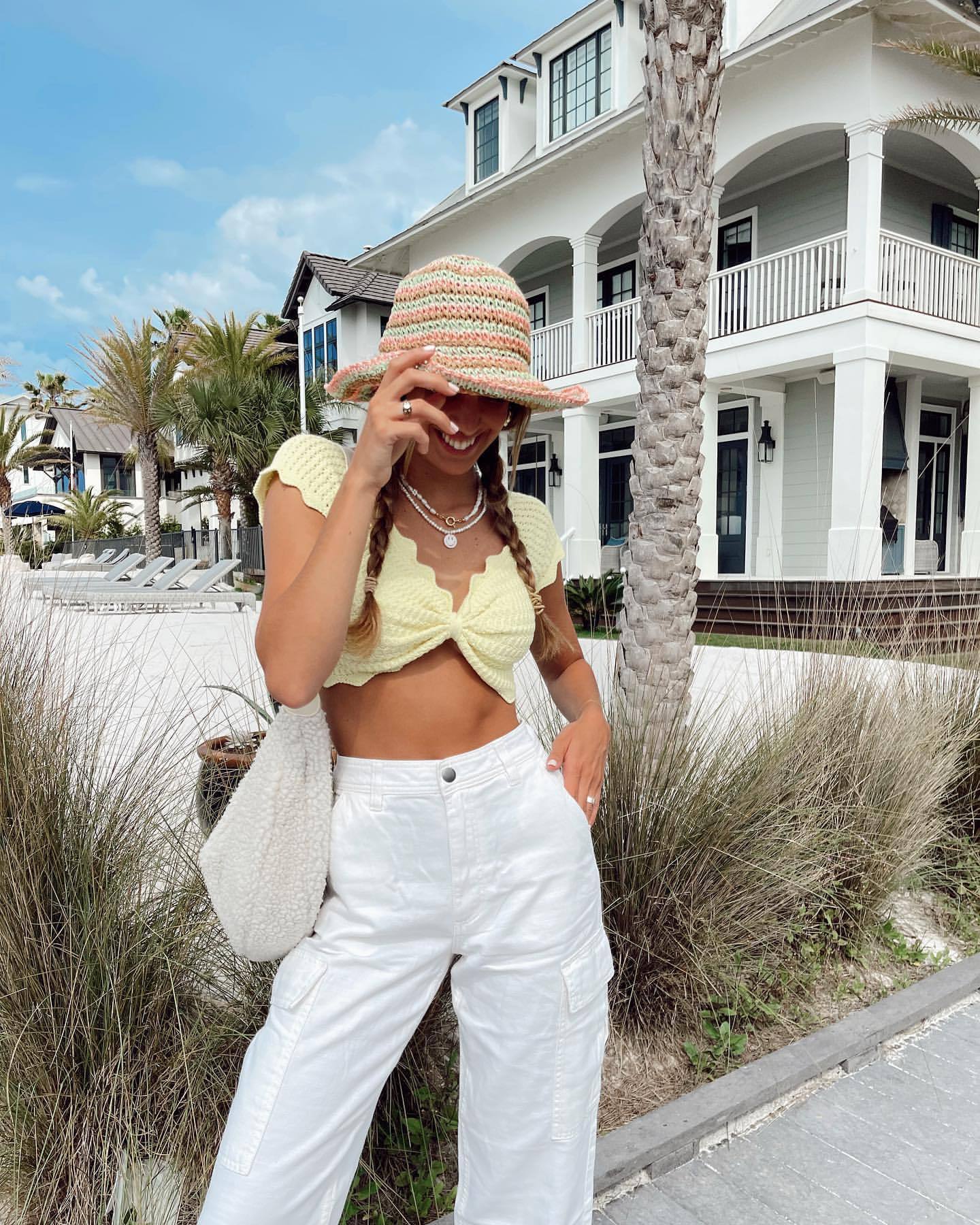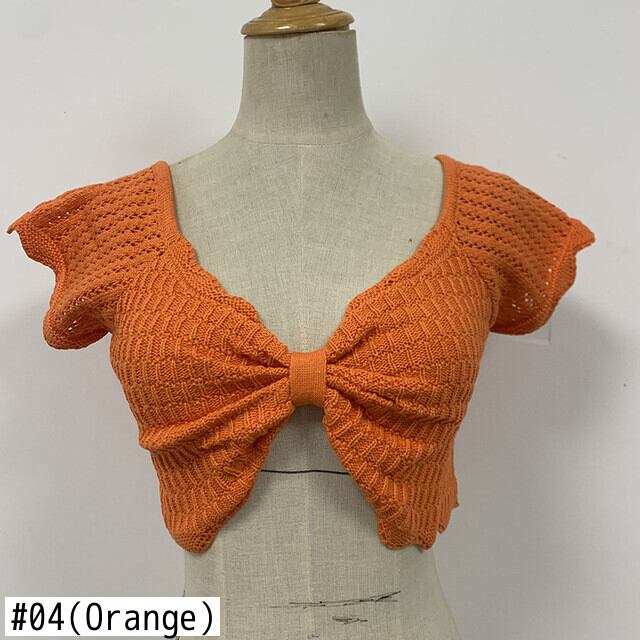 送料無料 HOUZHOU かぎ針編みクロップトップス Y2k Tシャツ女性の夏の V ネックセクシーなかわいい中空アウト包帯固体超ショート Tシャツホリデー 大人ガーリー スウィート キュート カジュアル サマー 夏物 Vネック ソリッドカラー AE1212777669454306456