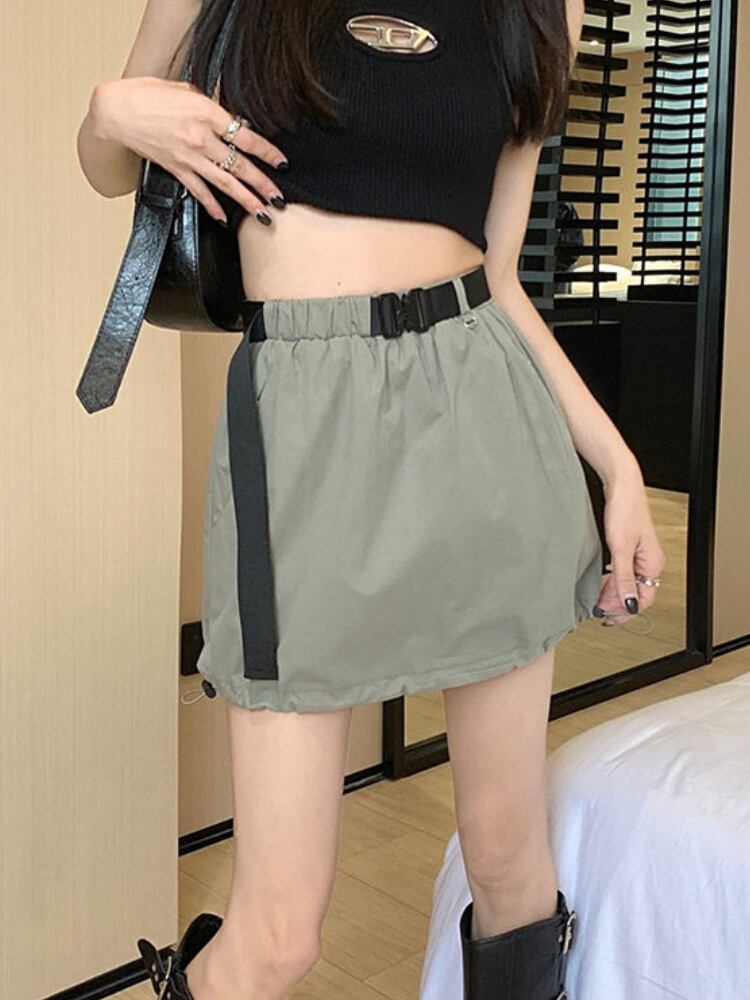 送料無料 HOUZHOU ベルトカーゴスカートの女性の夏 2023 弾性ウエスト巾着裾 A ラインミニスカートストリート エラスティック 伸縮 サマー 夏物 ハーネス Aライン AE12127776656206565013 | 女性の為の通販サイト-fashion navi