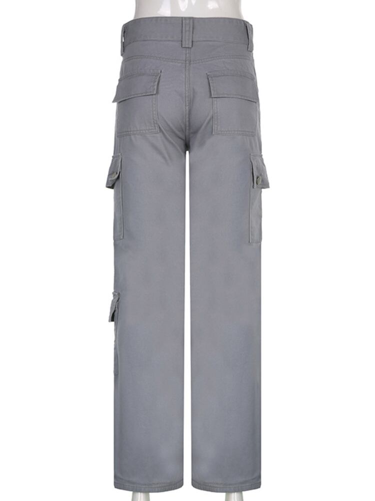 送料無料 Houzhou Y2k カーゴジーンズ女性ヴィンテージマルチポケットロングジーンズグレーウエストストレートパンツストリートデニムパンツ ビンテージ ポケット多め AE12127776629052823655