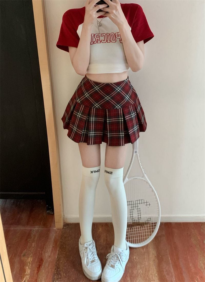 送料無料 方州プレッピーチェック柄プリーツスカート赤女性の夏 2023 ヴィンテージスタイルウエストパッチワーク A ラインミニスカート原宿 レッド かわいい サマー 夏物 Aライン ビンテージ AE12127776653631531766