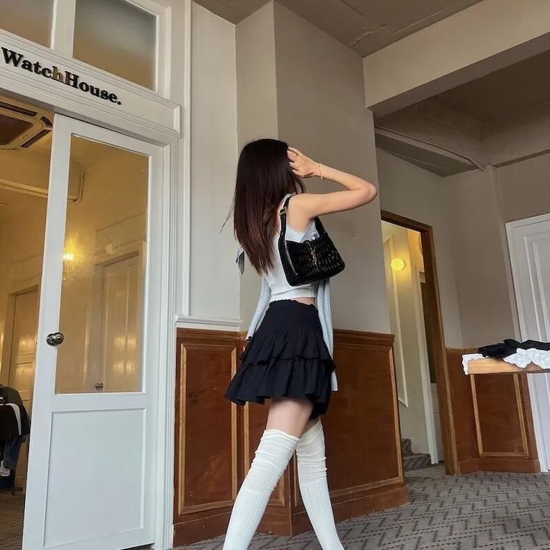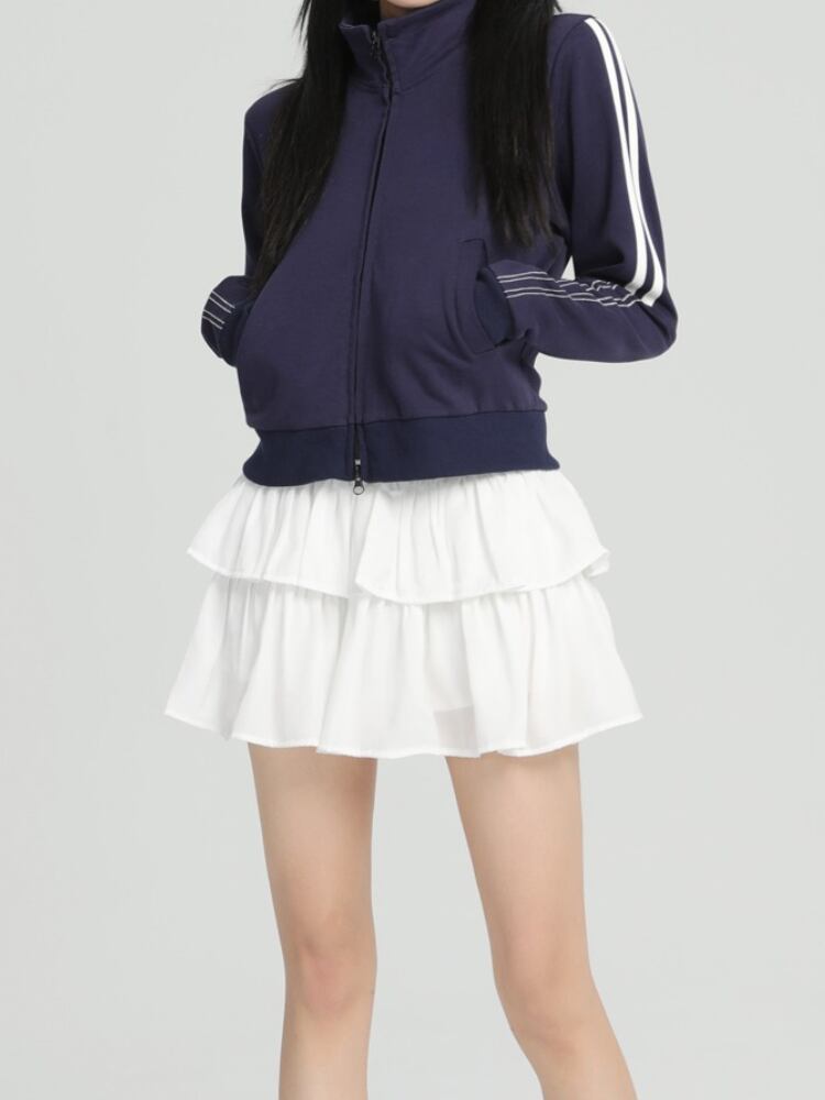 送料無料 HOUZHOU フリル白ミニスカートの女性の夏のウエスト弾性パッチワークレイヤーショートスカートかわいいスコート ホワイト エラスティック 伸縮 大人ガーリー スウィート キュート カジュアル サマー 夏物 AE1212777668757121729