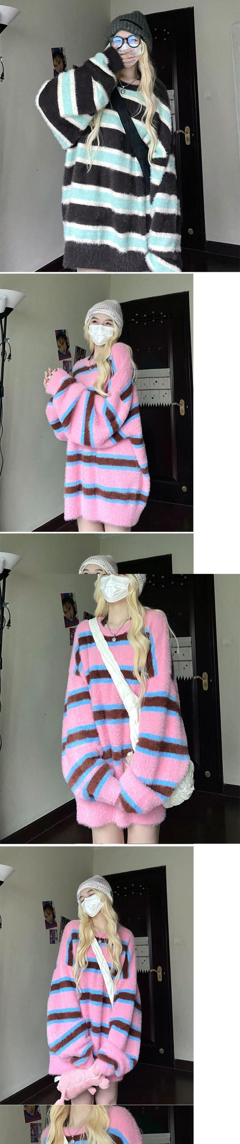 送料無料 HOUZHOU ヴィンテージストライプセーター女性ストリート Y2k 原宿長袖ルーズニットセーター秋冬プルオーバー ロング かわいい オータム 秋物 ウィンター 冬物 ビンテージ AE12127776621936438898 | 女性の為の通販サイト-fashion navi