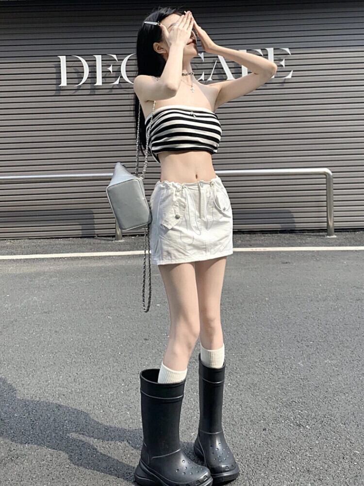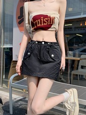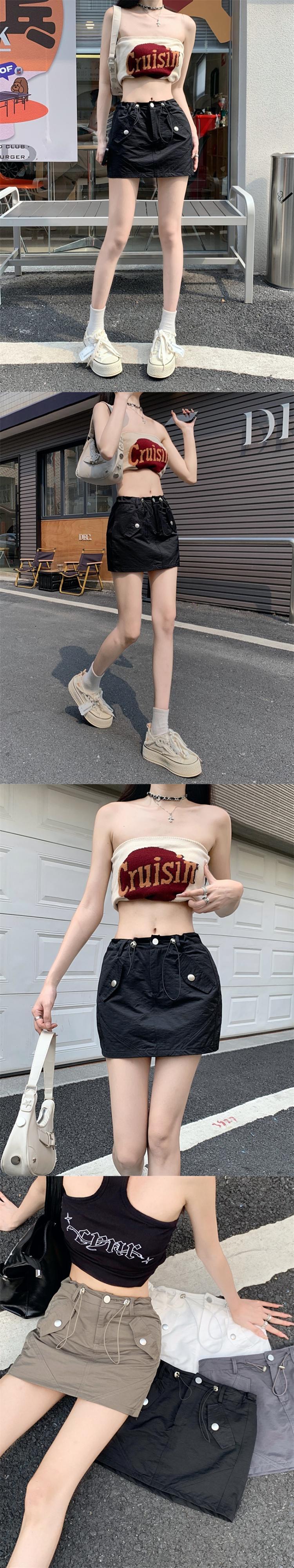 送料無料 HOUZHOU カーゴスカートショート女性の夏 Y2k 原宿巾着ポケットヴィンテージウエストスリムミニスカートスタイルストリート かわいい サマー 夏物 ビンテージ AE12127776667378990265