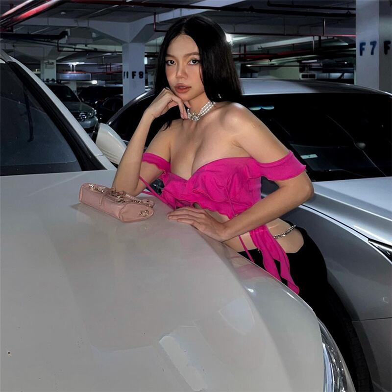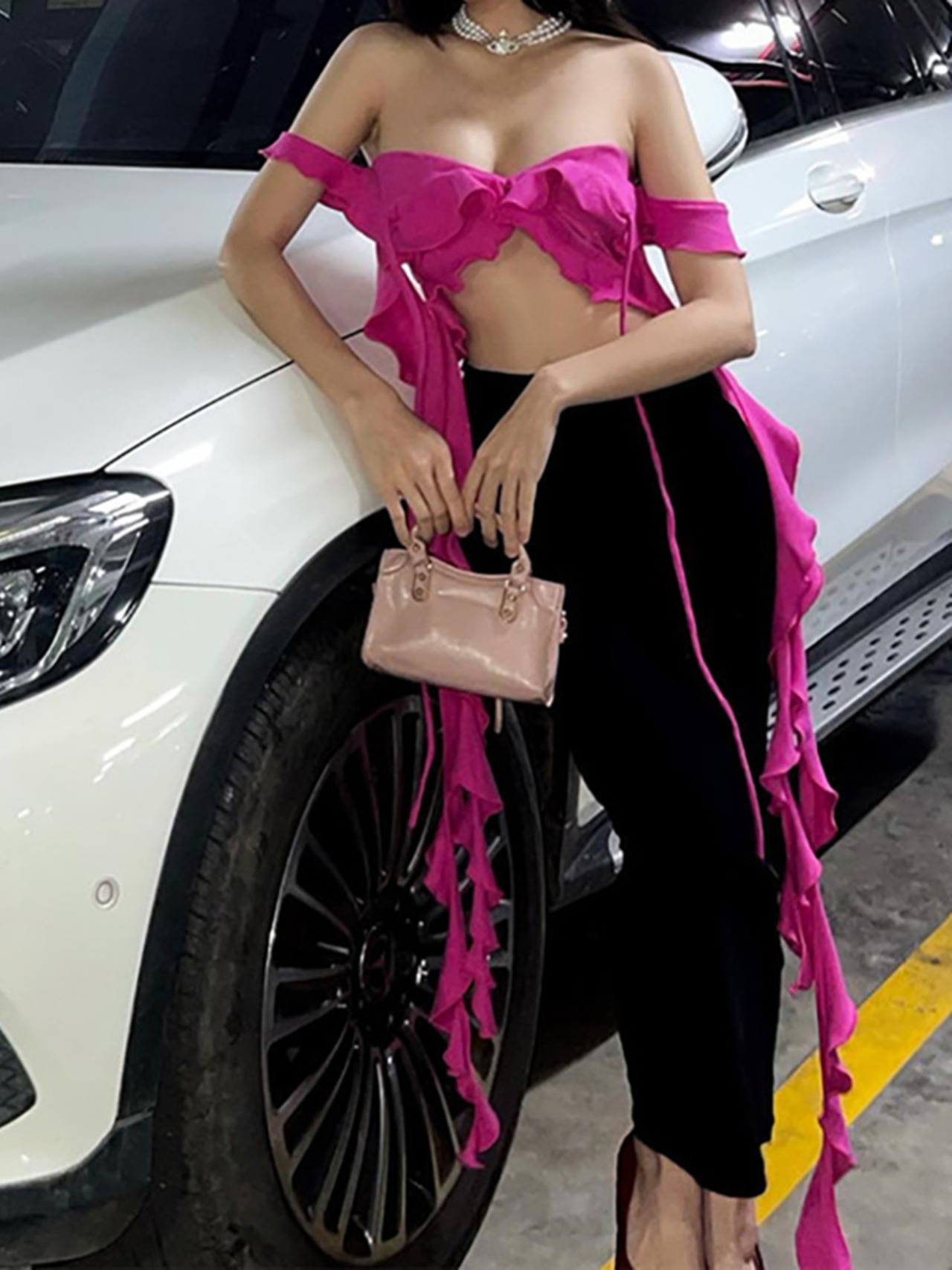 送料無料 HOUZHOU 妖精グランジホルタークロップトップ女性のセクシーなフリルリボンパッチワーク背中の開いたスリムオフショルダー Tシャツパーティーナイトクラブ AE12127776692437554412 | 女性の為の通販サイト-fashion navi
