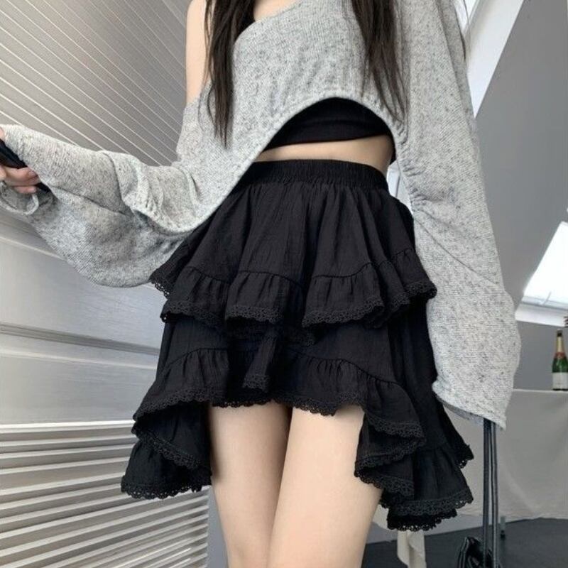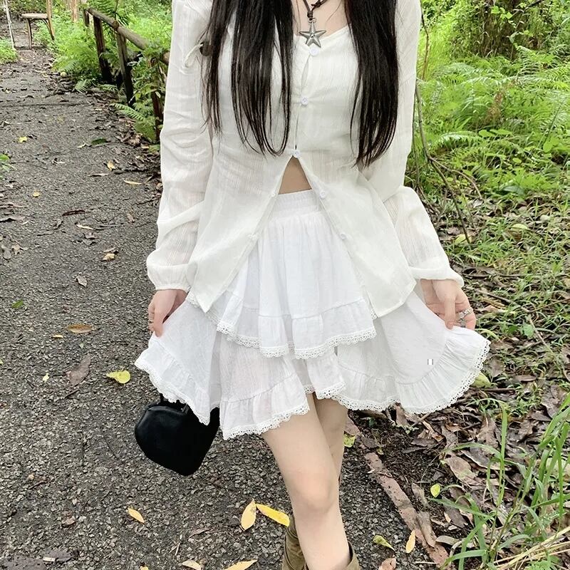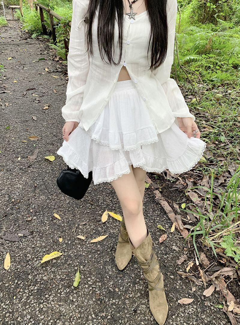送料無料 HOUZHOU 不規則なフリルミニスカートの女性フェアリーコアレースパッチワークウエスト 2 層自由奔放に生きる白ショートスカート森ガール夏 ホワイト 大人ガーリー スウィート キュート カジュアル サマー 夏物 AE12127776691327472991