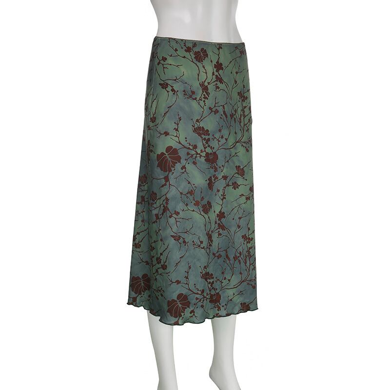 送料無料 HOUZHOU ヴィンテージプリントロングスカート女性 Y2k グランジグリーン Cottagecore ローウエストスリムストレートミディスカート女の子 90s 美的 ビンテージ AE12127776683468046735